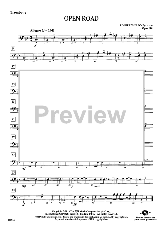 Digital Sheet Music for Open Road - Trombone by Robert Sheldon scored for Concert Band; id:440287
