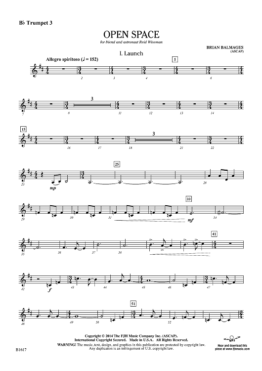 Digital Sheet Music for Open Space - Bb Trumpet 3 by Brian Balmages scored for Concert Band; id:448048