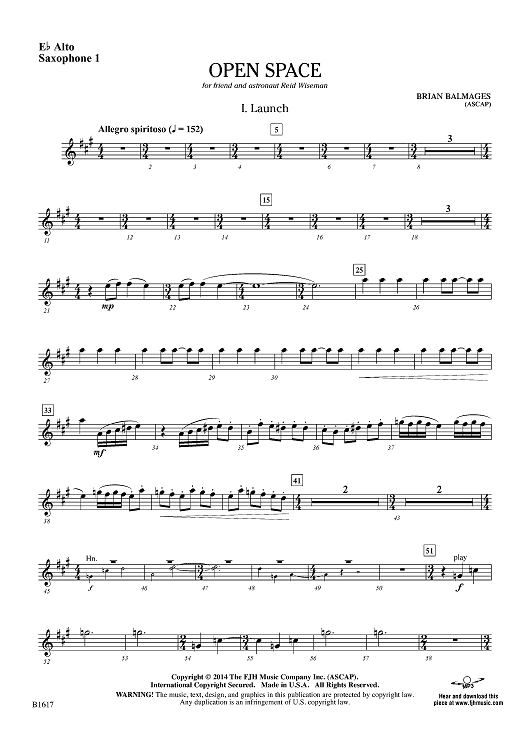"Open Space - Eb Alto Sax 1" Sheet Music by Brian Balmages
