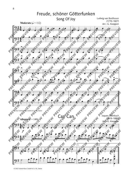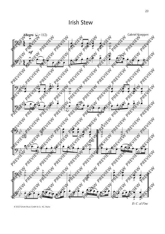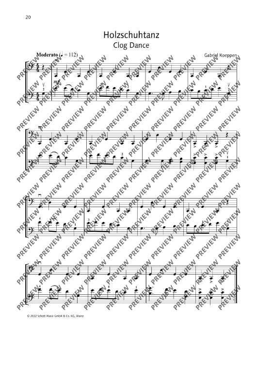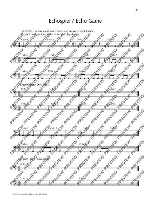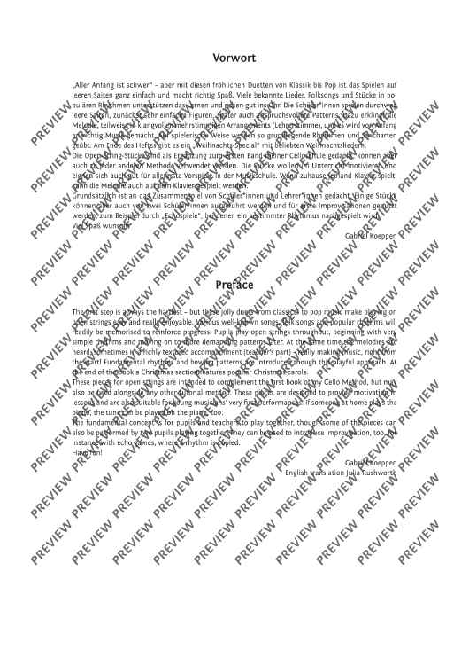 These pieces for open strings are intended to complement the first book of the Koeppen Cello Method, but may also be used alongside any other tutorial method. The pieces are also suitable for young musicians’ very first performances. Various well-known songs and popular rhythms will readily be memorised to reinforce progress. Pupils play open strings throughout, beginning with very simple rhythms and moving on to more demanding patterns later. At the same time the melodies are heard, sometimes in a richly textured accompaniment (teacher’s part) - really making music, right from the start!
