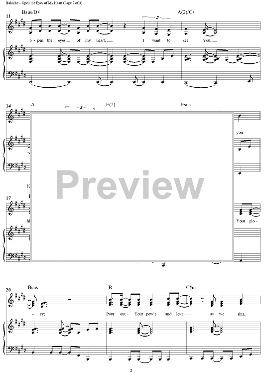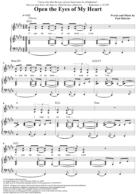 Digital Sheet Music for Open the Eyes of My Heart by Paul Baloche scored for Piano/Vocal/Chords; id:293285