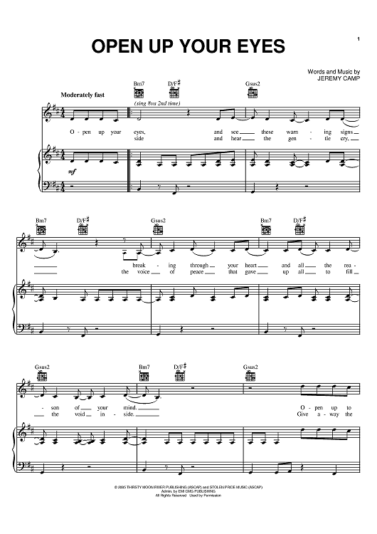 "Open Up Your Eyes" Sheet Music by Jeremy Camp