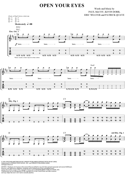 Digital Sheet Music for Open Your Eyes by 12 Stones, Paul McCoy, Kevin Dorr, Eric Weaver, Patrick Quave scored for Guitar Tab/Vocal; id:304420