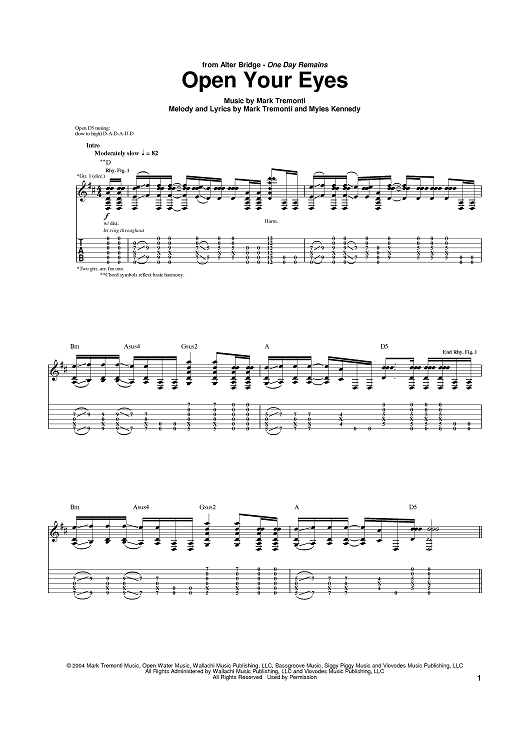 Digital Sheet Music for Open Your Eyes by Alter Bridge, Myles Kennedy, Mark Tremonti scored for Guitar Tab; id:381555