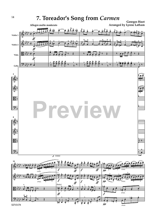 Digital Sheet Music for Opera Favorites - Score by Various, Lynne Latham scored for String Quartet; id:463082