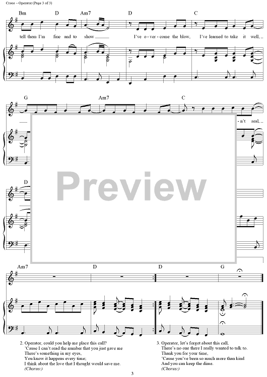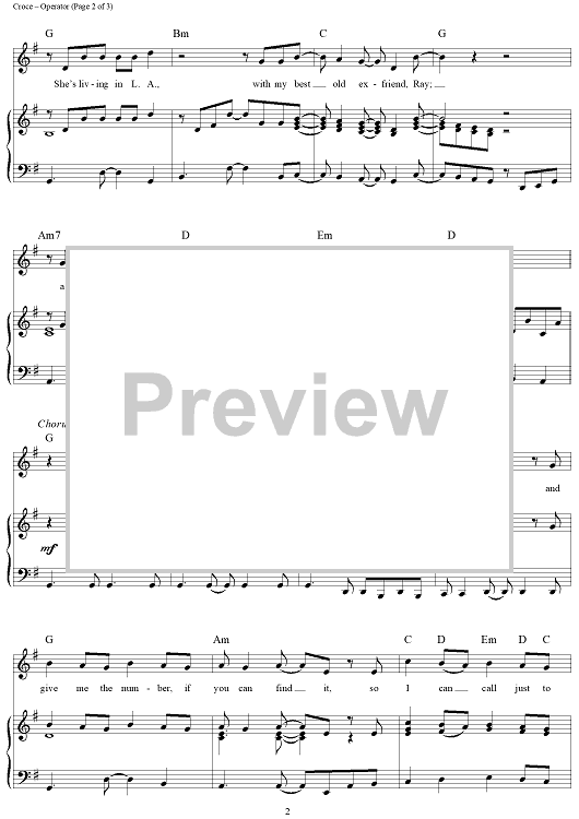 Digital Sheet Music for Operator (That's Not the Way It Feels) by Jim Croce scored for Piano/Vocal/Chords; id:362751