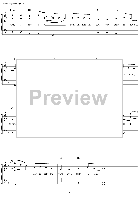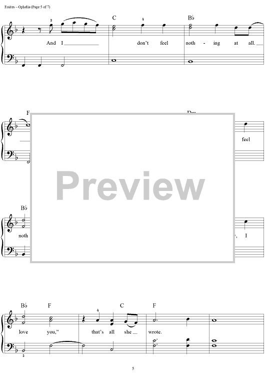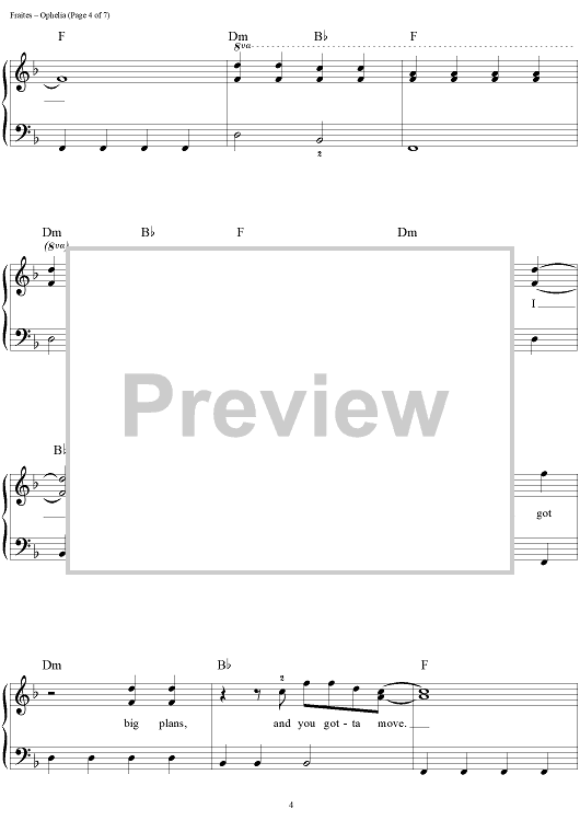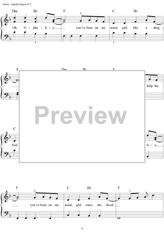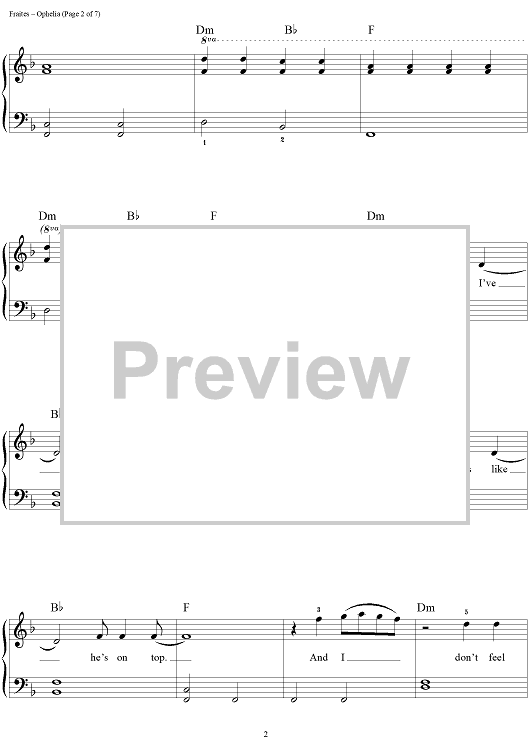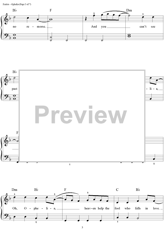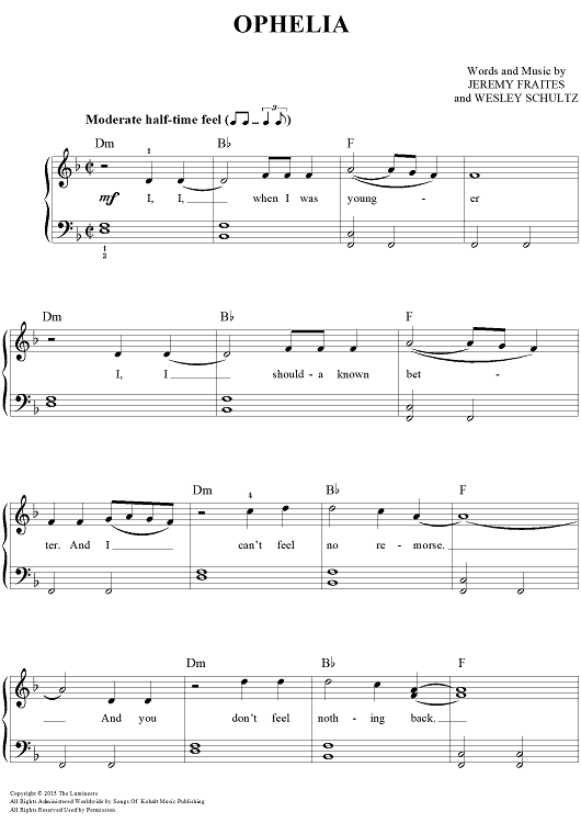 Digital Sheet Music for Ophelia by Jeremy Fraites, Wesley Schultz, The Lumineers scored for Easy Piano/Vocal/Chords; id:464116