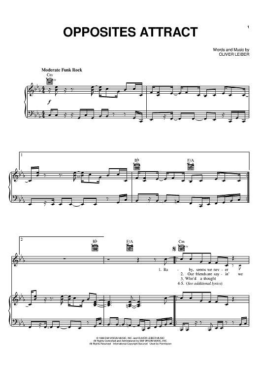 Digital Sheet Music for Opposites Attract by Oliver Leiber, Paula Abdul scored for Piano/Vocal/Chords; id:402574