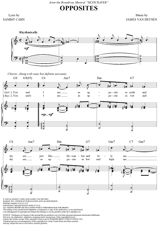 "Opposites" Sheet Music by Jimmy Van Heusen