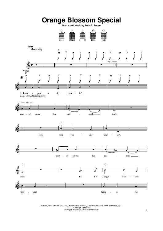 Digital Sheet Music for Orange Blossom Special by Johnny Cash, Bill Monroe, Nitty Gritty Dirt Band, Ervin T. Rouse scored for Lead Sheet with Guitar Grids; id:374837