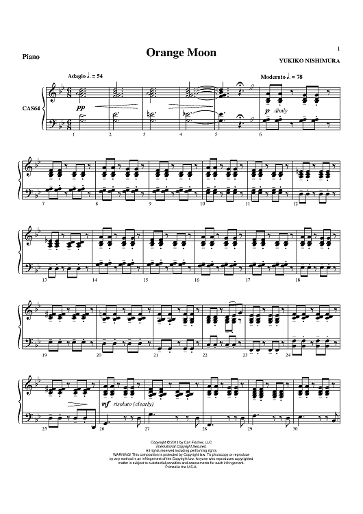 "Orange Moon - Piano" Sheet Music by Yukiko Nishimura