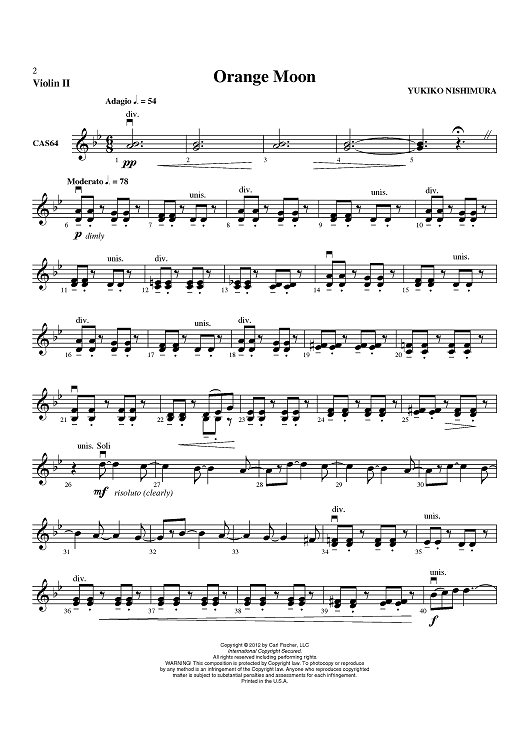 "Orange Moon - Violin 2" Sheet Music by Yukiko Nishimura