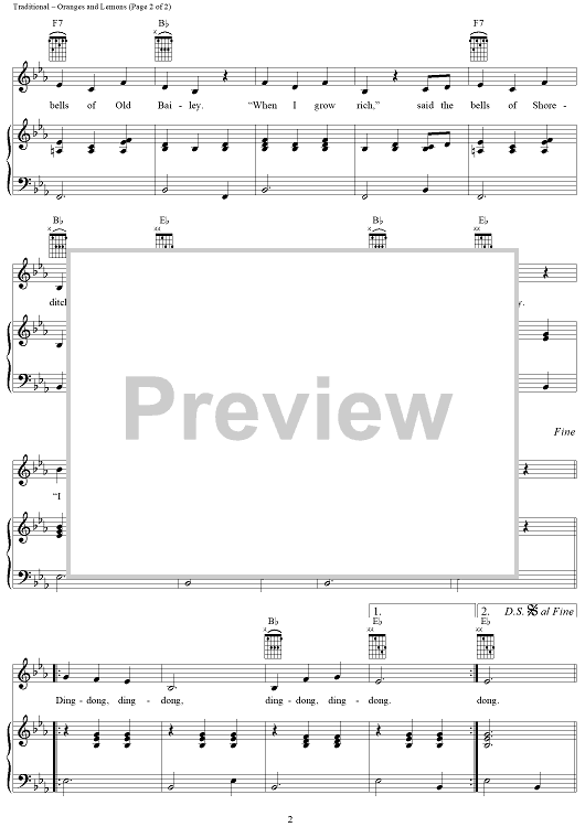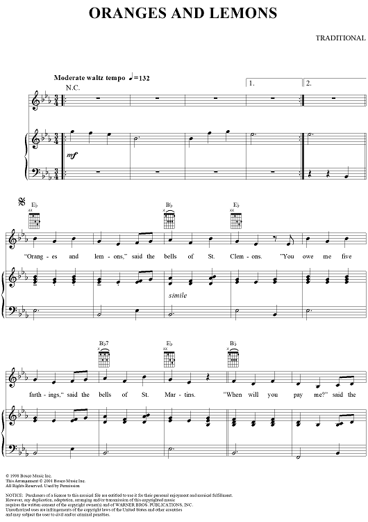 Digital Sheet Music for Oranges and Lemons by Traditional scored for Piano/Vocal/Chords; id:289166