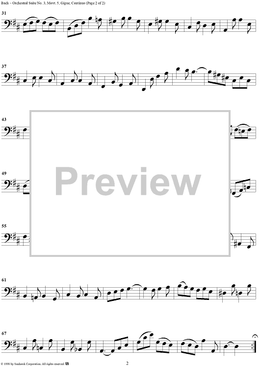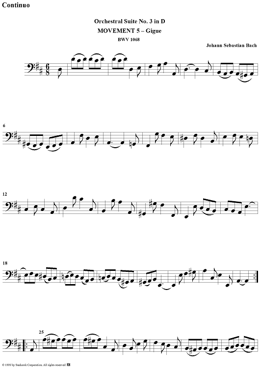 Digital Sheet Music for Orchestral Suite No. 3, No. 5: Gigue - Cello/Continuo by Johann Sebastian Bach scored for Chamber Orchestra; id:95819