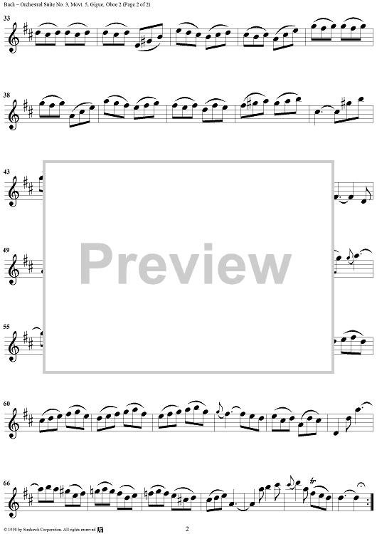 Digital Sheet Music for Orchestral Suite No. 3, No. 5: Gigue - Oboe 2 by Johann Sebastian Bach scored for Chamber Orchestra; id:95821