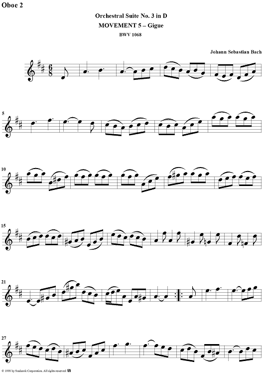"Orchestral Suite No. 3, No. 5: Gigue - Oboe 2" Sheet Music by Johann Sebastian Bach