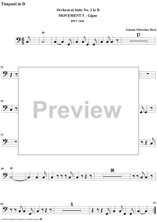 "Orchestral Suite No. 3, No. 5: Gigue - Timpani" Sheet Music by Johann Sebastian Bach