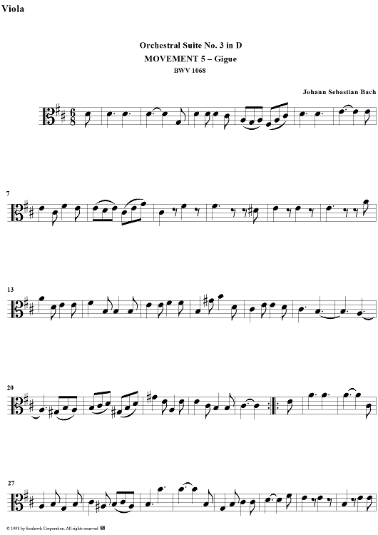 "Orchestral Suite No. 3, No. 5: Gigue - Viola" Sheet Music by Johann Sebastian Bach