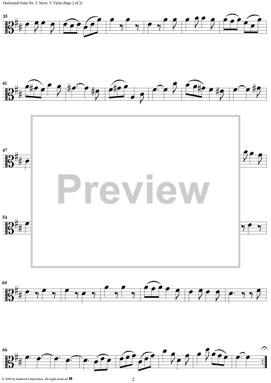 Digital Sheet Music for Orchestral Suite No. 3, No. 5: Gigue - Viola by Johann Sebastian Bach scored for Chamber Orchestra; id:95826