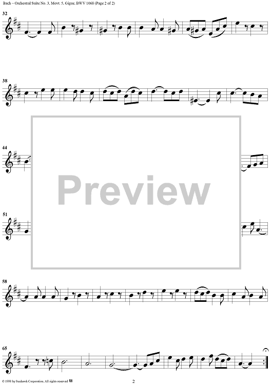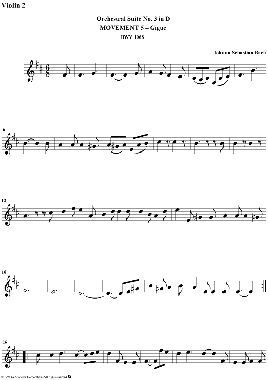 Digital Sheet Music for Orchestral Suite No. 3, No. 5: Gigue - Violin 2 by Johann Sebastian Bach scored for Chamber Orchestra; id:95828