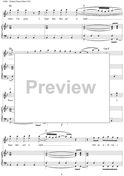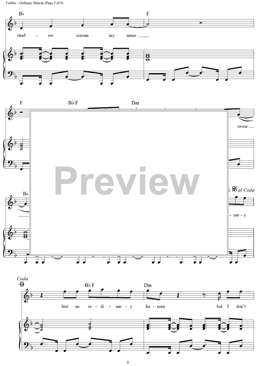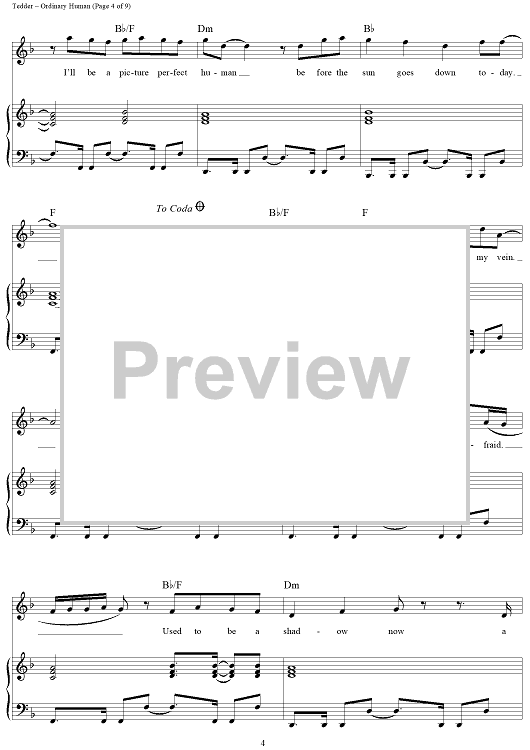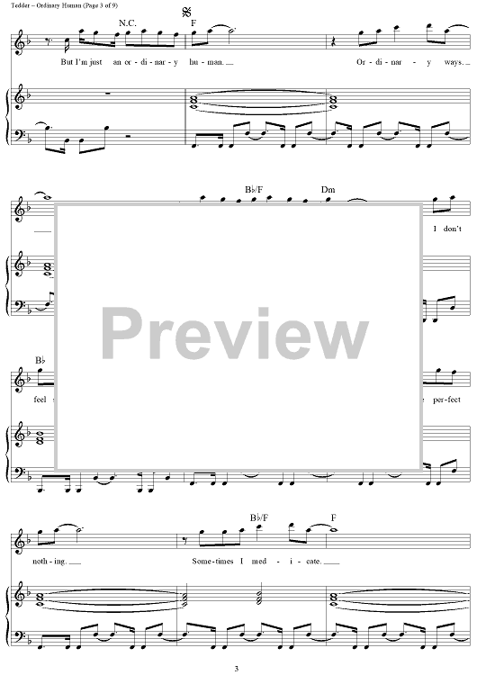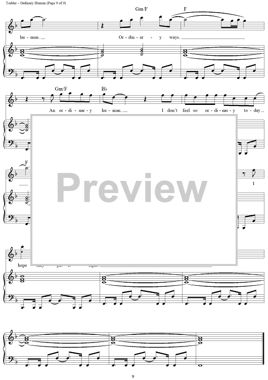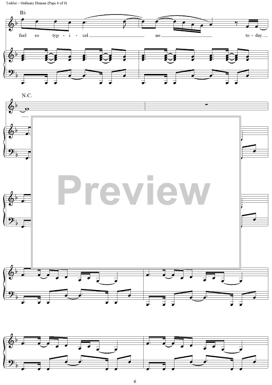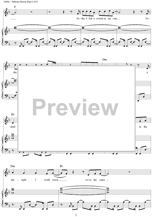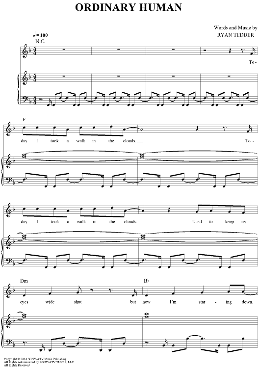 Digital Sheet Music for Ordinary Human by Ryan Tedder, OneRepublic scored for Piano/Vocal/Chords; id:443498