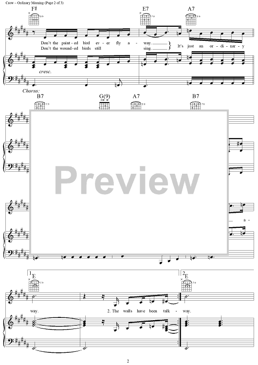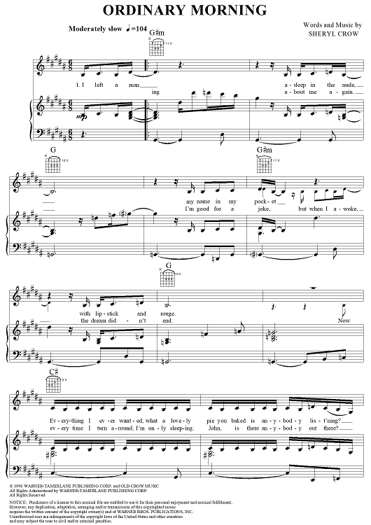 Digital Sheet Music for Ordinary Morning by Sheryl Crow scored for Piano/Vocal/Chords; id:115878