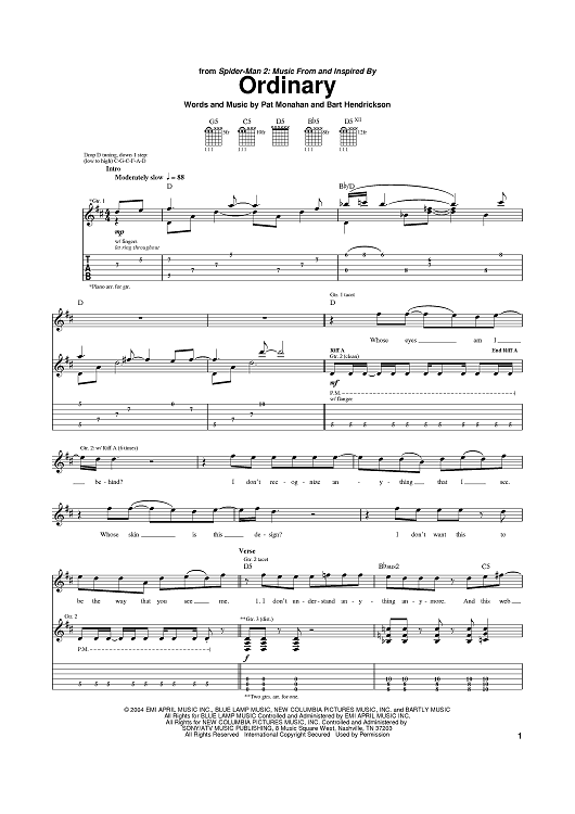 Digital Sheet Music for Ordinary by Pat Monahan, Train, Bart Hendrickson scored for Guitar Tab; id:380423