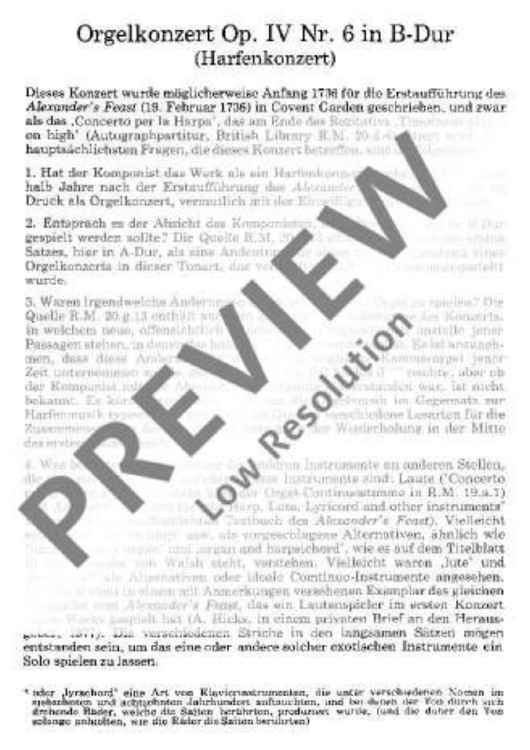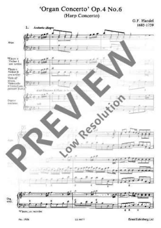 "Organ concerto No. 6 B major - Full Score" Sheet Music by George Frideric Handel