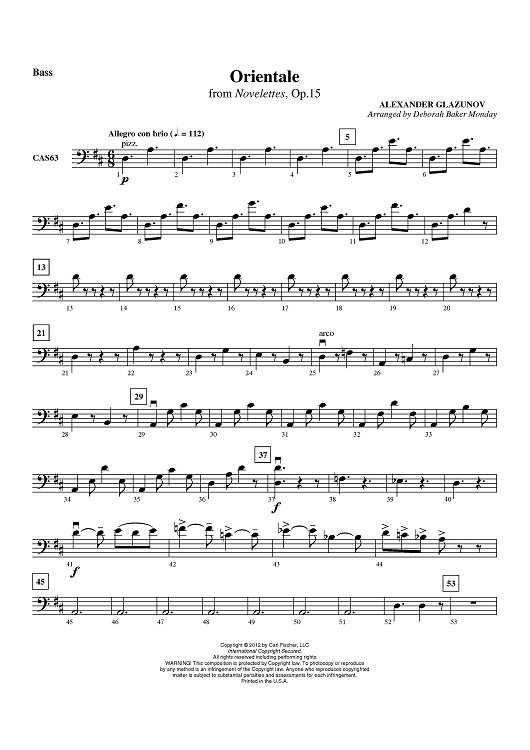 Digital Sheet Music for Orientale - from Novelettes, Op. 15 - Bass by Alexander Glazunov, Deborah Baker Monday scored for String Orchestra; id:431664