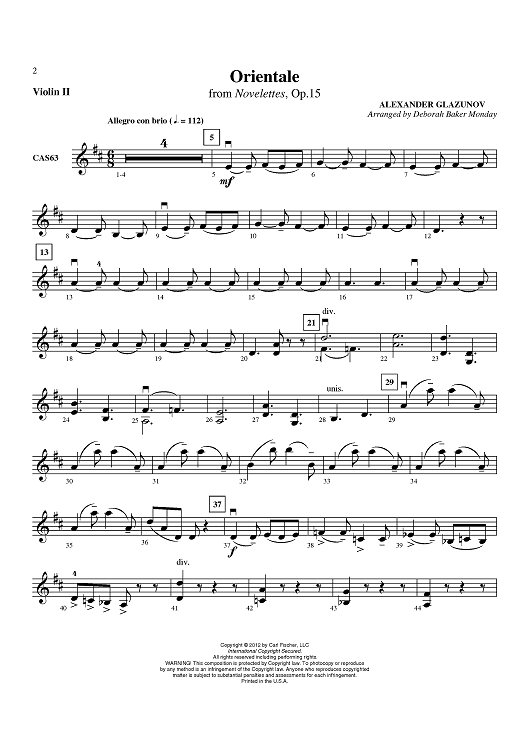 Digital Sheet Music for Orientale - from Novelettes, Op. 15 - Violin 2 by Alexander Glazunov, Deborah Baker Monday scored for String Orchestra; id:431660