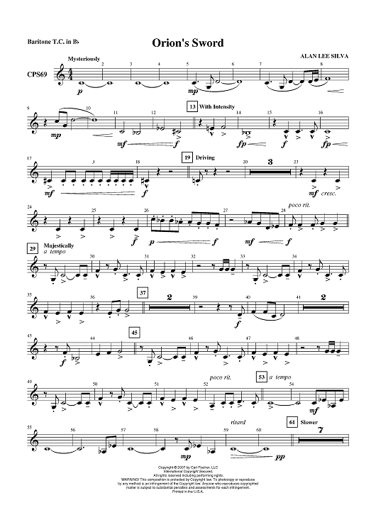 Digital Sheet Music for Orion`s Sword - Baritone TC by Alan Lee Silva scored for Concert Band; id:407341