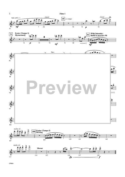 Digital Sheet Music for Orion`s Sword - Flute 1 by Alan Lee Silva scored for Concert Band; id:407321