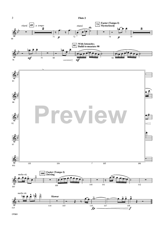 Digital Sheet Music for Orion`s Sword - Flute 2 by Alan Lee Silva scored for Concert Band; id:407322