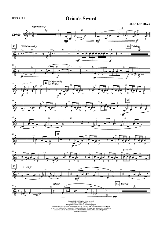 Digital Sheet Music for Orion`s Sword - Horn in F 2 by Alan Lee Silva scored for Concert Band; id:407338
