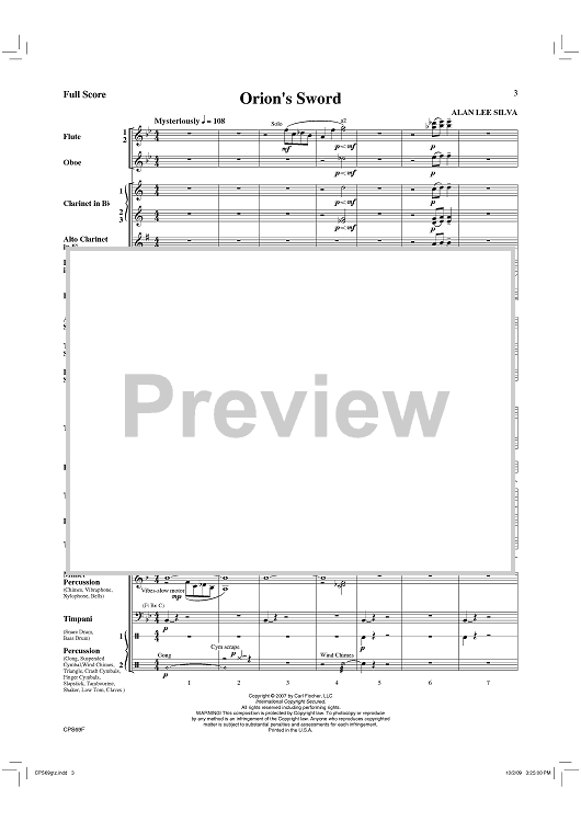 Digital Sheet Music for Orion`s Sword - Score by Alan Lee Silva scored for Concert Band; id:407320