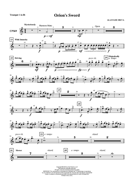 "Orion`s Sword - Trumpet 1 in B-flat" Sheet Music by Alan Lee Silva