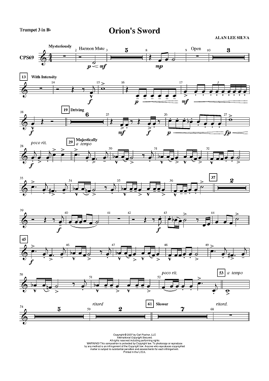"Orion`s Sword - Trumpet 3 in B-flat" Sheet Music by Alan Lee Silva