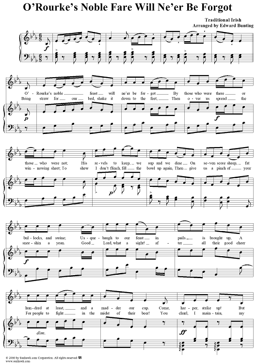 Digital Sheet Music for O'Rourke's Noble Fare Will Ne'er Be Forgot by , Edward Bunting, Traditional scored for Piano/Vocal; id:261117