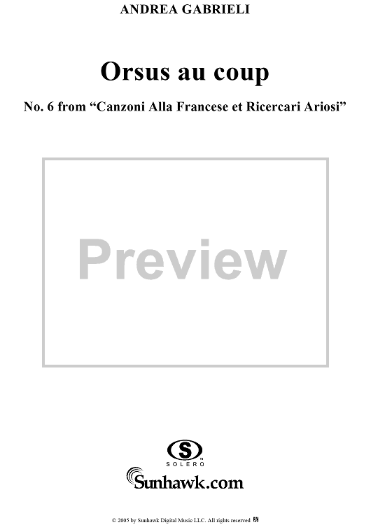 "Orsus au coup, No. 6 from "Canzoni Alla Francese et Ricercari Ariosi"" Sheet Music by Andrea Gabrieli