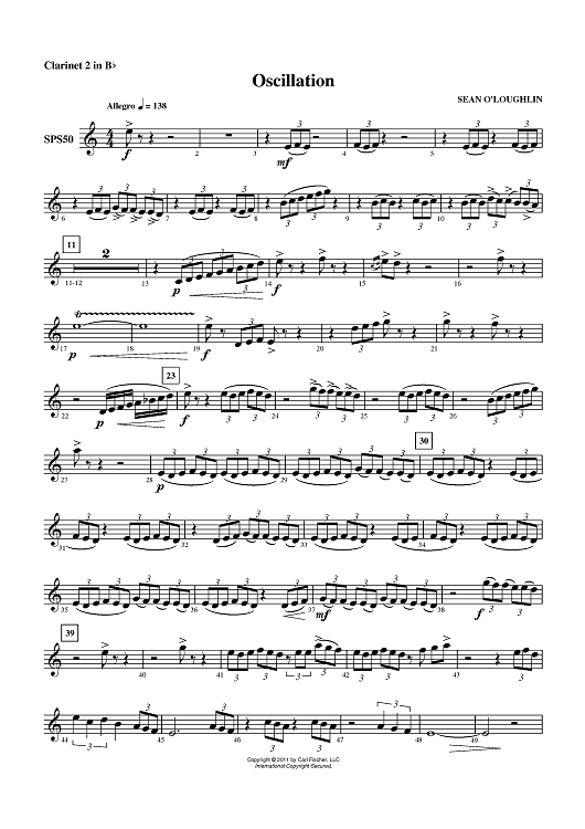 "Oscillation - Clarinet 2 in Bb" Sheet Music by Sean O'Loughlin