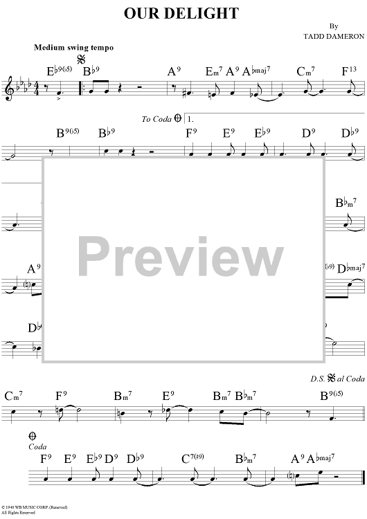 Digital Sheet Music for Our Delight by Tadd Dameron scored for Lead Sheet; id:272549