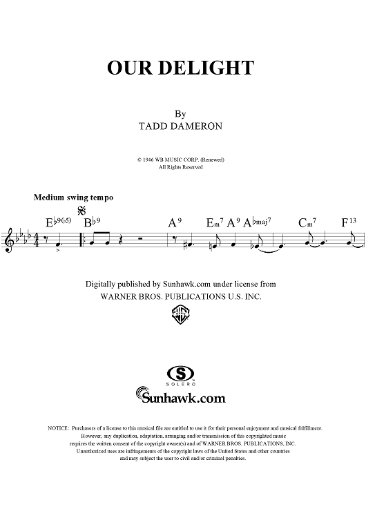 "Our Delight" Sheet Music by Tadd Dameron