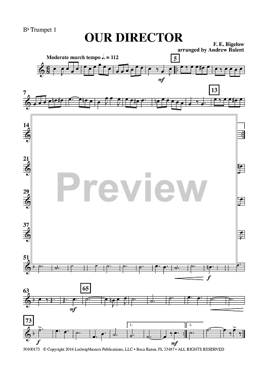 Digital Sheet Music for Our Director - Bb Trumpet 1 by , Andrew Balent, F. E. Bigelow scored for Concert Band; id:461501
