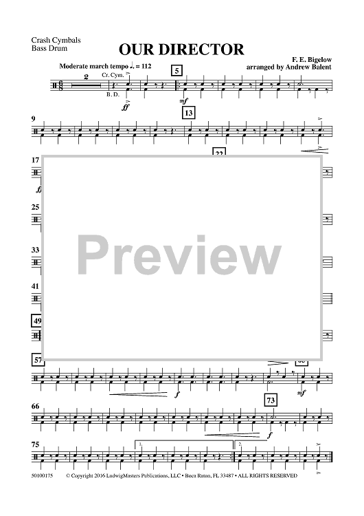 Digital Sheet Music for Our Director - Crash Cymbals / Bass Drum by , Andrew Balent, F. E. Bigelow scored for Concert Band; id:461513