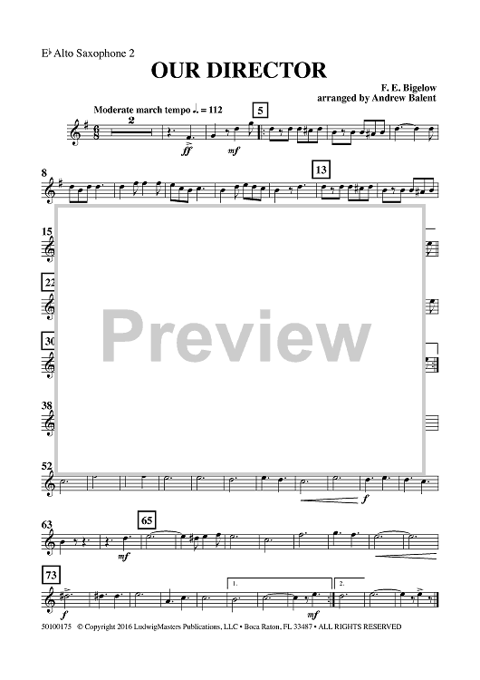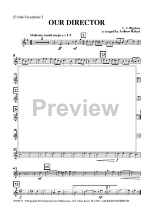 Digital Sheet Music for Our Director - Eb Alto Sax 2 by , Andrew Balent, F. E. Bigelow scored for Concert Band; id:461498