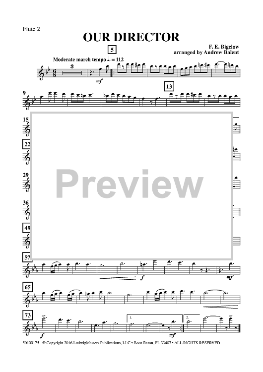 Digital Sheet Music for Our Director - Flute 2 by , Andrew Balent, F. E. Bigelow scored for Concert Band; id:461491