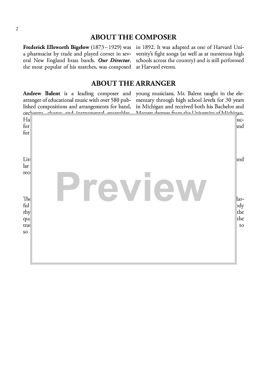 Digital Sheet Music for Our Director - Score by , Andrew Balent, F. E. Bigelow scored for Concert Band; id:461489