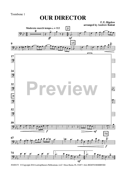 Digital Sheet Music for Our Director - Trombone 1 by , Andrew Balent, F. E. Bigelow scored for Concert Band; id:461505