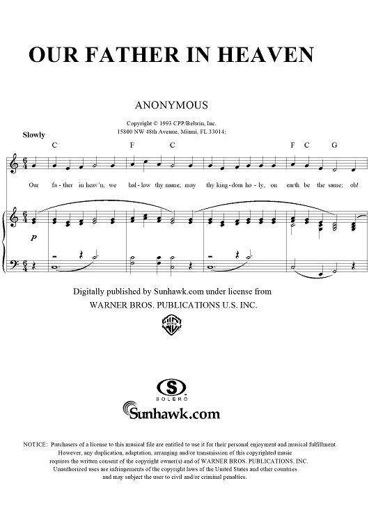 Digital Sheet Music for Our Father in Heaven by Unknown Writer scored for Piano/Vocal/Chords; id:277142