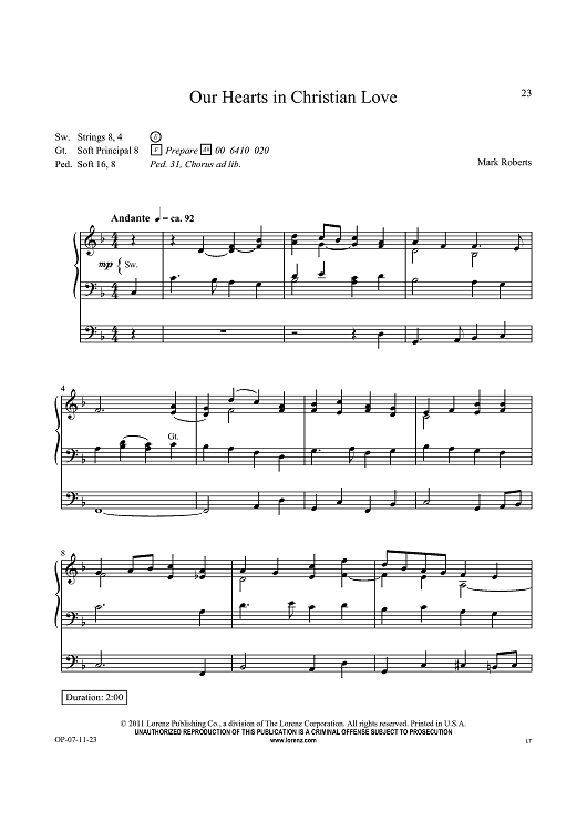 Digital Sheet Music for Our Hearts in Christian Love by Mark Roberts scored for Organ Solo; id:434389